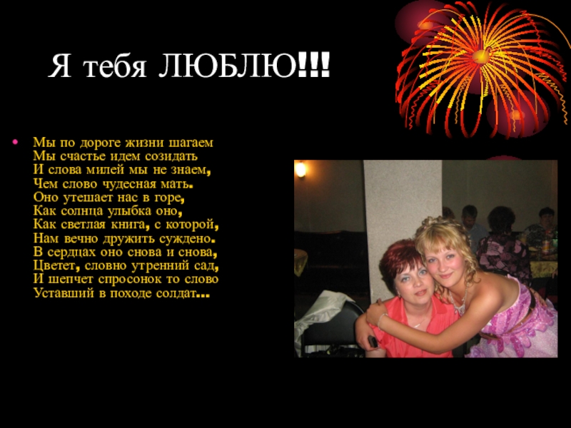 Я тебя ЛЮБЛЮ!!!Мы по дороге жизни шагаем Мы счастье идем созидать И слова милей мы не знаем,