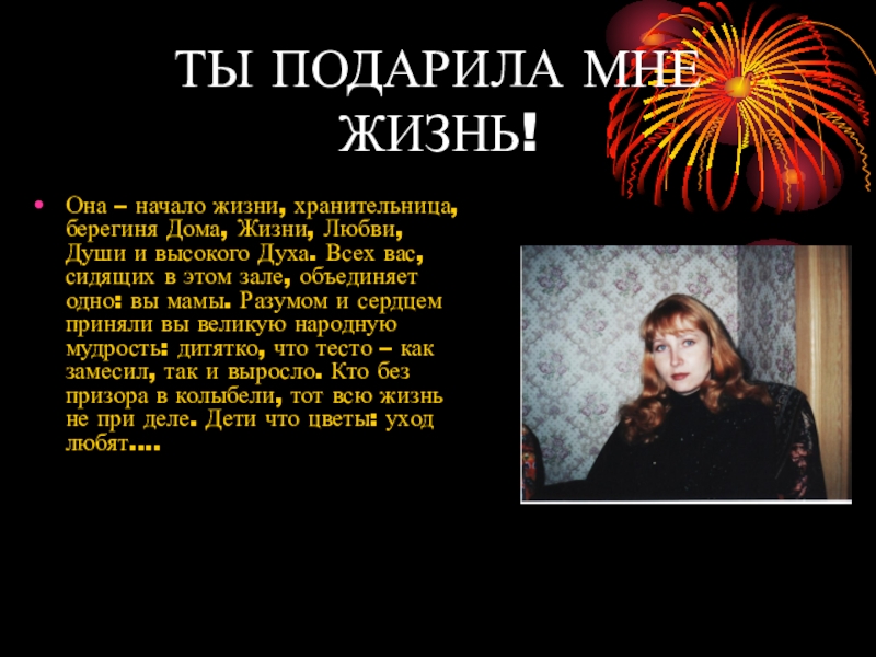 Слайд 5ТЫ ПОДАРИЛА МНЕ ЖИЗНЬ!