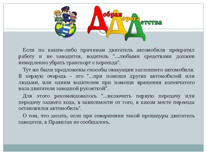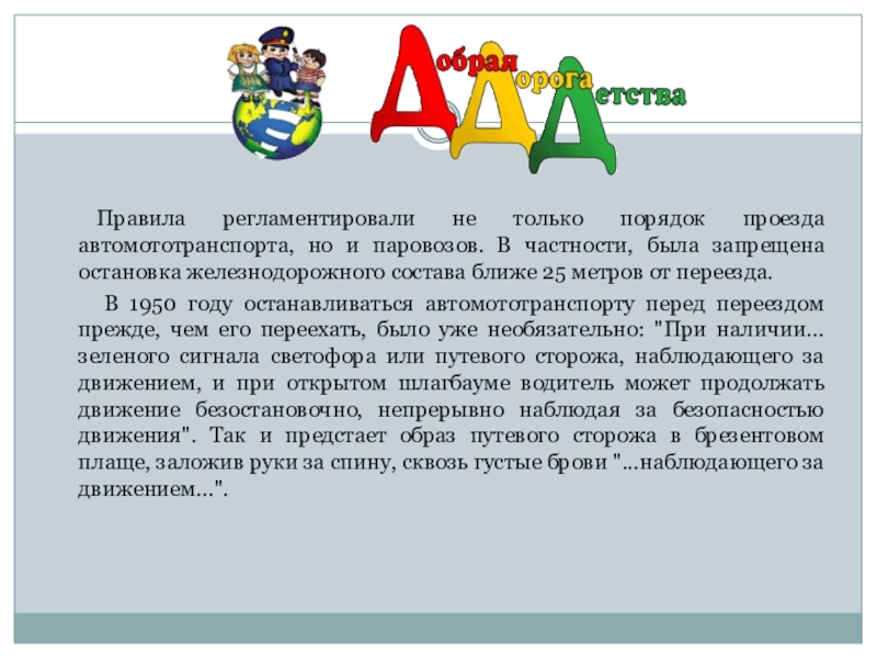 Слайд 11 Правила регламентировали не только порядок проезда автомототранспорта, но и паровозов. В