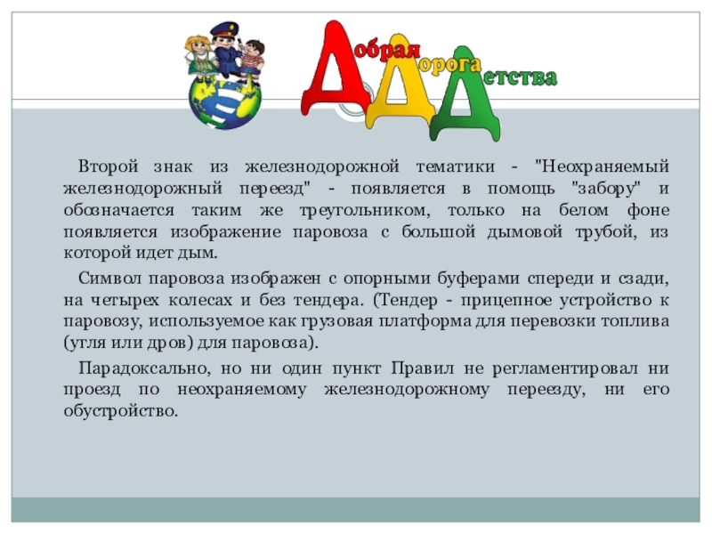 в помощь "забору" и обозначается таким же треугольником, только на белом фоне появляется изображение паровоза с большой дымовой трубой, из которой идет дым.