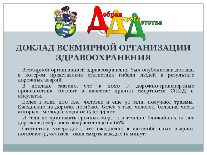 Слайд 13ДОКЛАД ВСЕМИРНОЙ ОРГАНИЗАЦИИ ЗДРАВООХРАНЕНИЯ