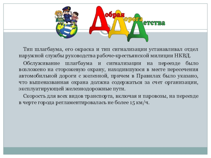 Тип шлагбаума, его окраска и тип сигнализации устанавливал отдел наружной службы