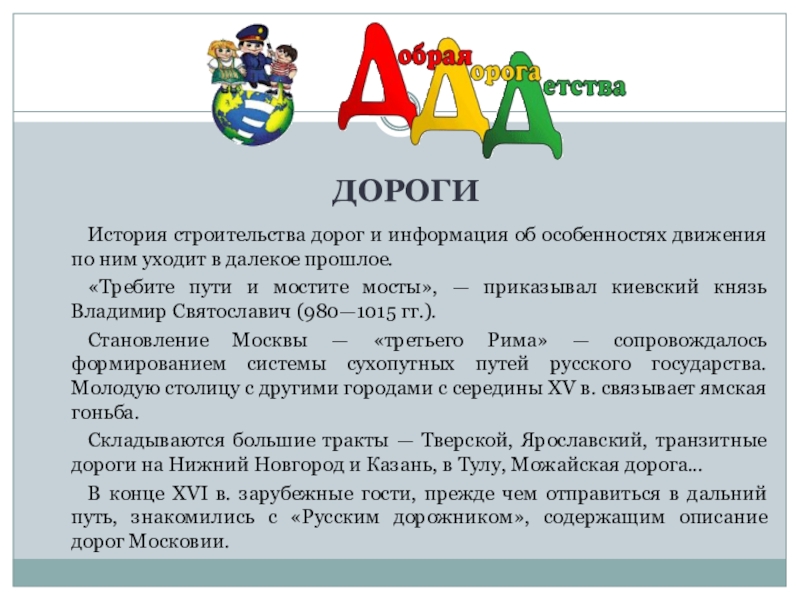 В конце XVI в. зарубежные гости, прежде чем отправиться в дальний путь, знакомились с «Русским дорожником», содержащим описание дорог Московии.