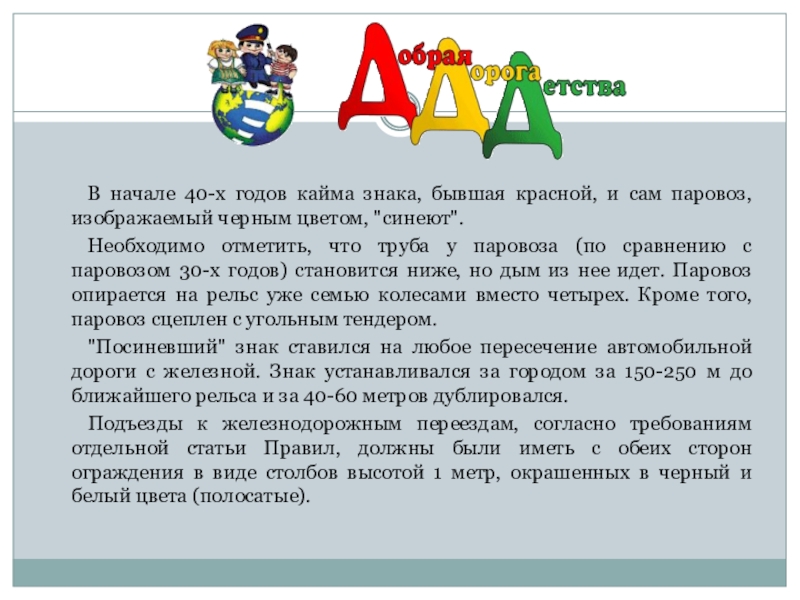 Слайд 9 В начале 40-х годов кайма знака, бывшая красной, и сам паровоз,