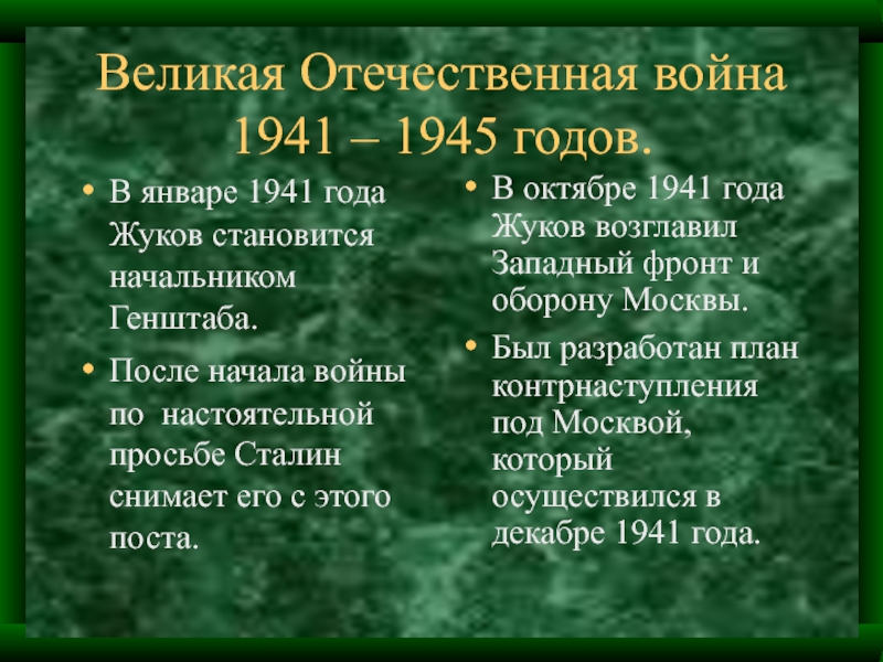 В октябре 1941 года Жуков возглавил Западный фронт и оборону Москвы.