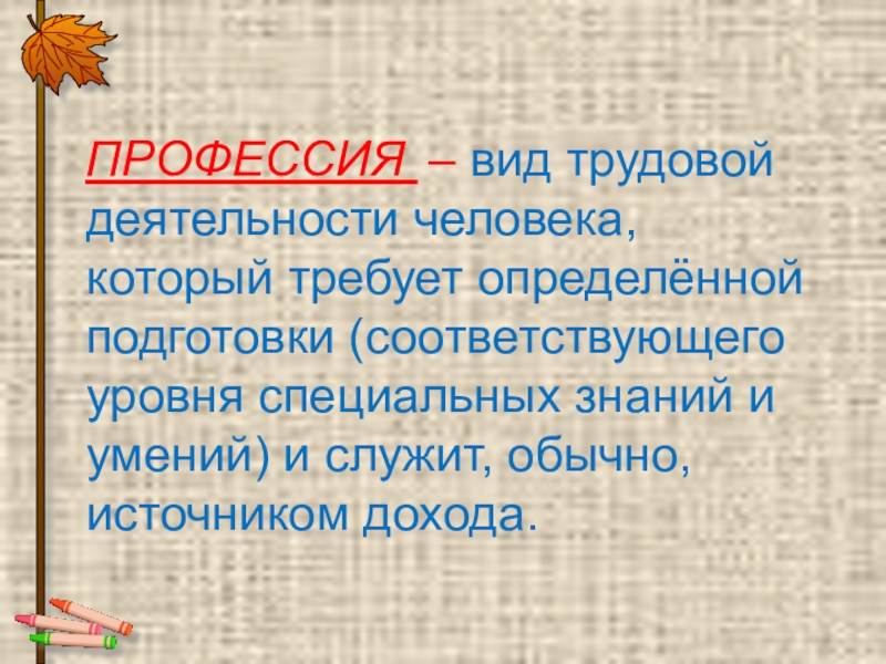 ПРОФЕССИЯ – вид трудовой деятельности человека, который требует определённой