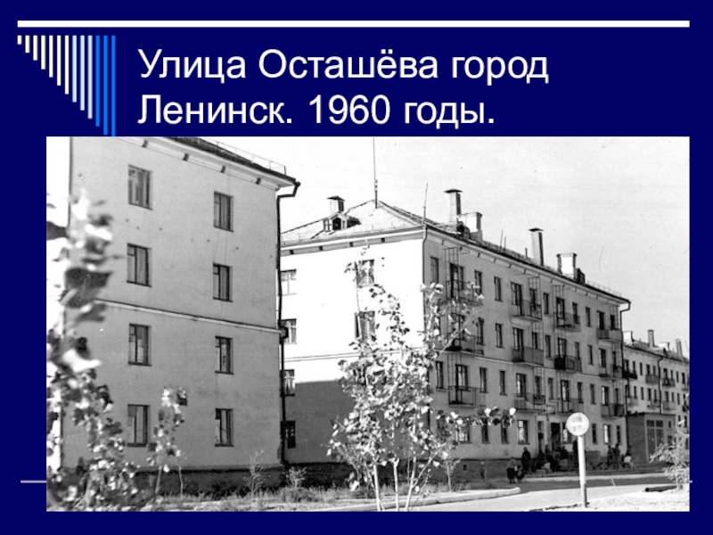 Слайд 7Улица Осташёва город Ленинск. 1960 годы.