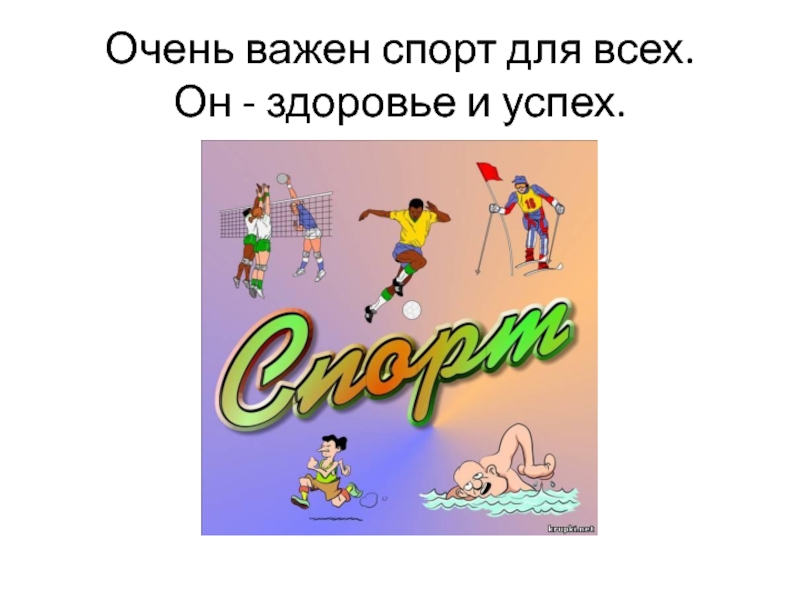 Слайд 4Очень важен спорт для всех. Он - здоровье и успех.
