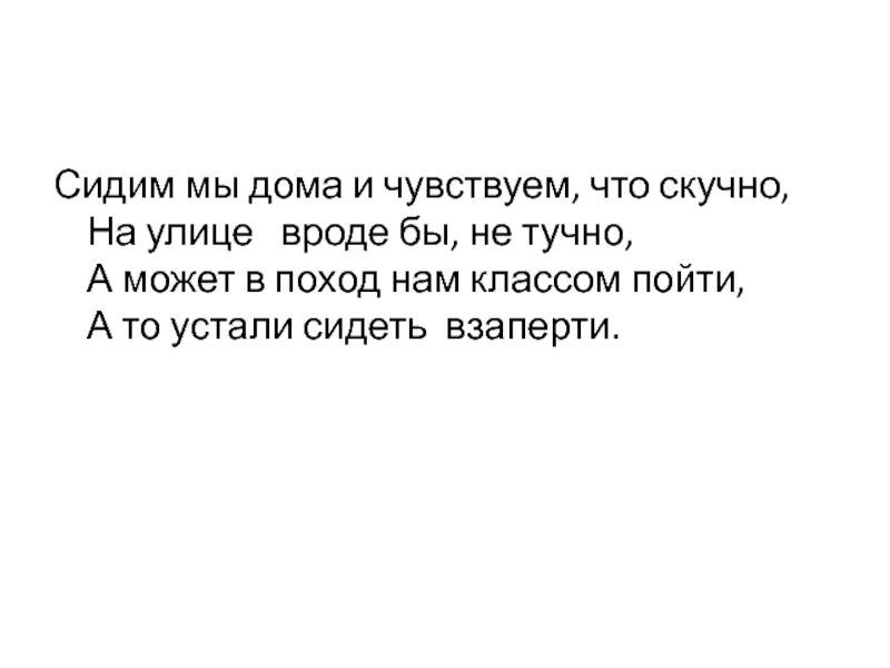 тучно, А может в поход нам классом пойти, А то устали сидеть взаперти.