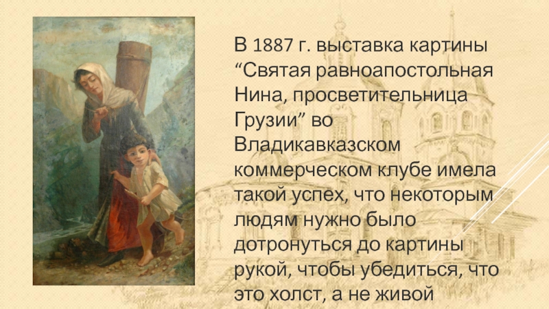 Слайд 4В 1887 г. выставка картины “Святая равноапостольная Нина, просветительница Грузии” во