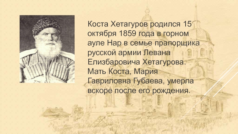 Слайд 2Коста Хетагуров родился 15 октября 1859 года в горном ауле Нар