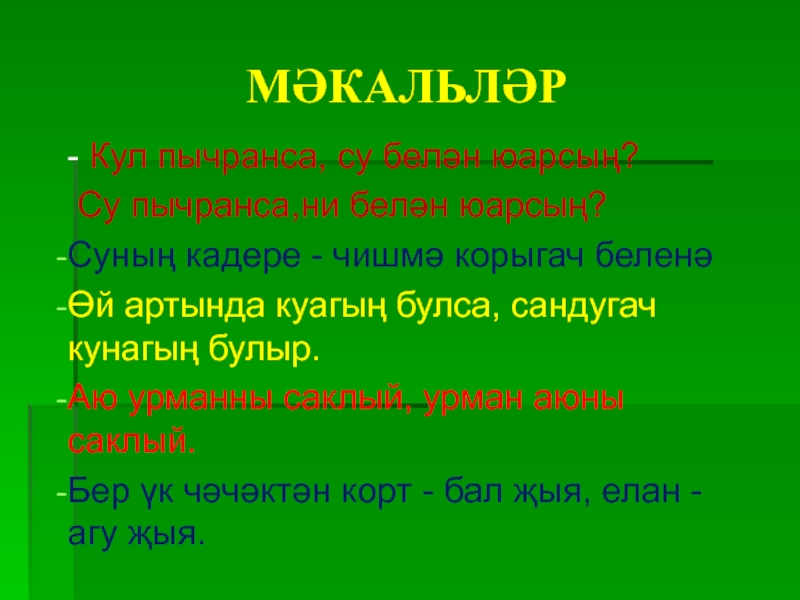 МӘКАЛЬЛӘР- Кул пычранса, су белән юарсың? Су пычранса,ни белән юарсың?Суның кадере - чишмә корыгач беленәӨй артында куагың