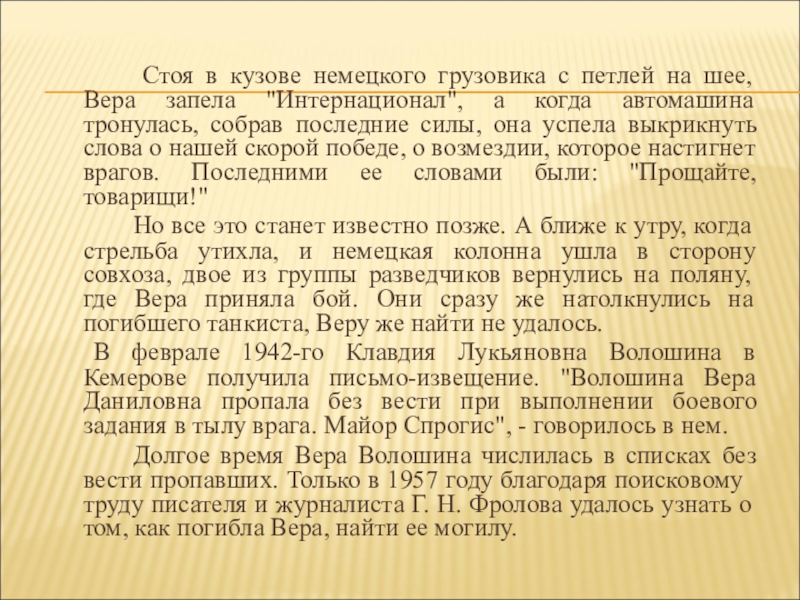 Слайд 20 Стоя в кузове немецкого грузовика с петлей на шее, Вера