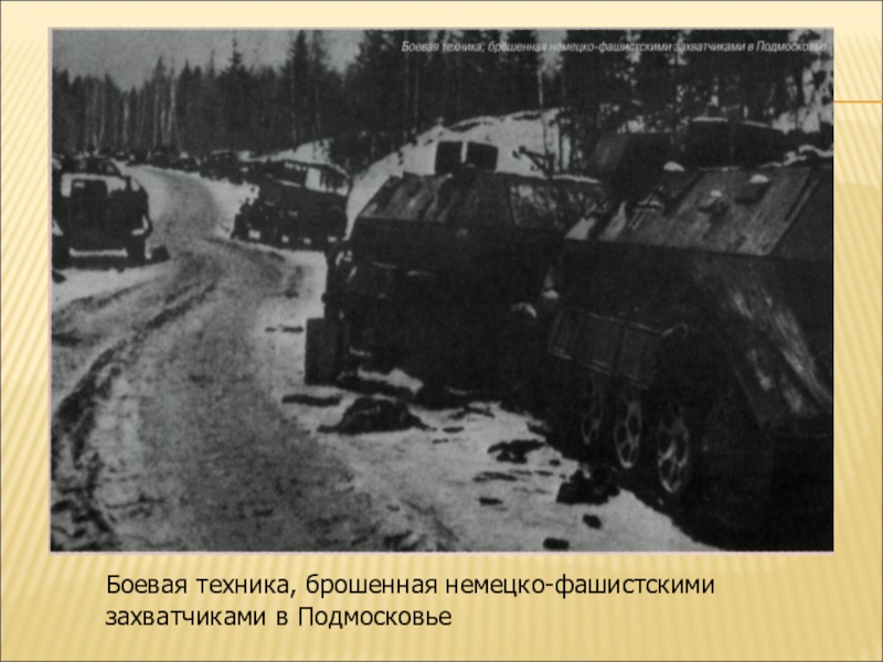 Слайд 26Боевая техника, брошенная немецко-фашистскими захватчиками в Подмосковье