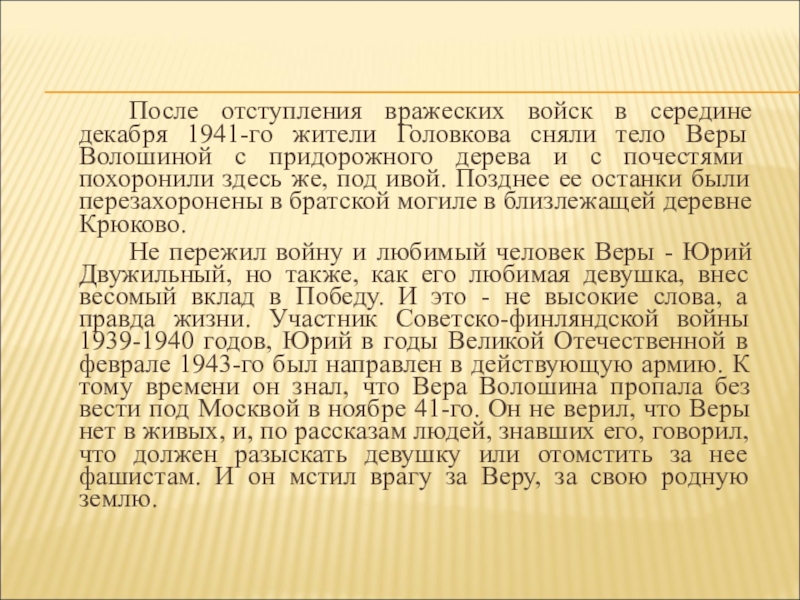 Слайд 25 После отступления вражеских войск в середине декабря 1941-го жители Головкова сняли