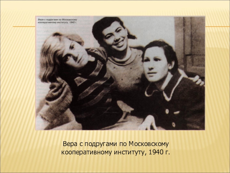 Слайд 7Вера с подругами по Московскому кооперативному институту, 1940 г.