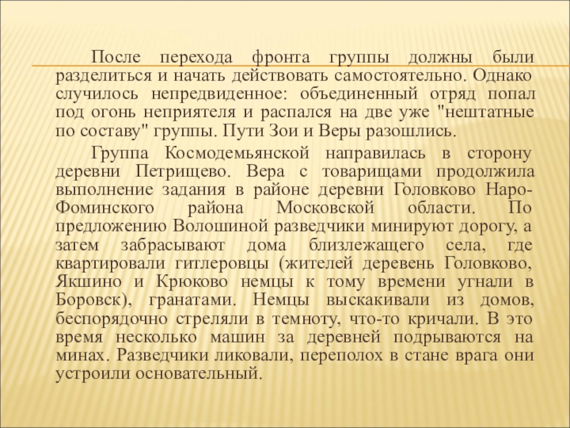 Слайд 17 После перехода фронта группы должны были разделиться и начать действовать самостоятельно.