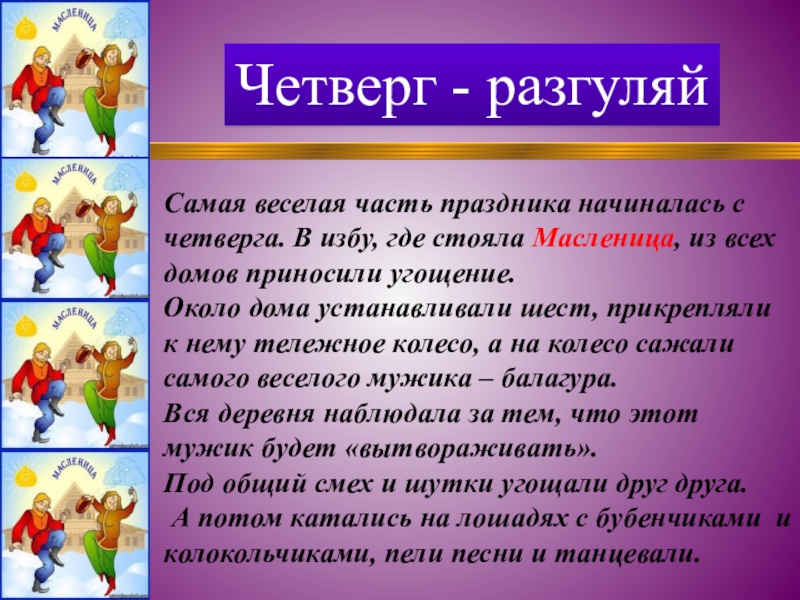 Ровно в 11.45 раздается звон «блинного колокола» и каждая участница состязания бежит с горячей сковородкой и блином.