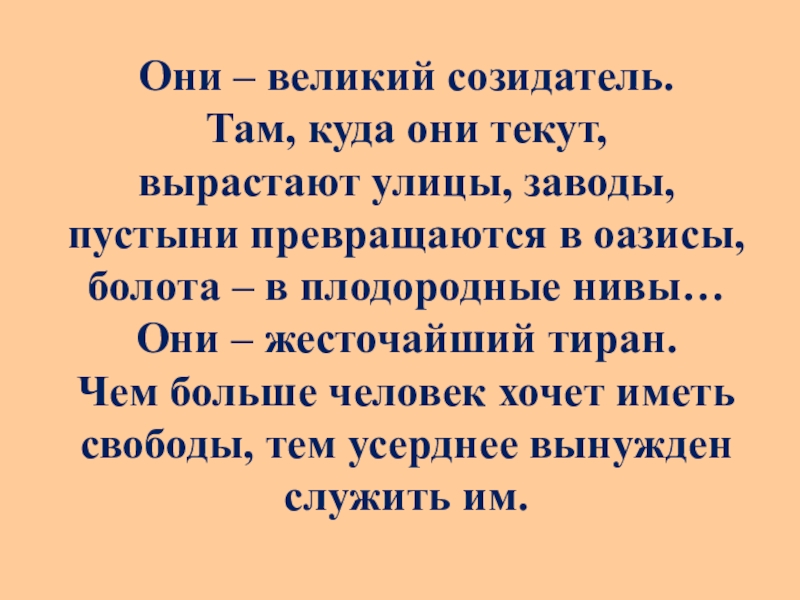 Чем больше человек хочет иметь свободы, тем усерднее вынужден служить им.