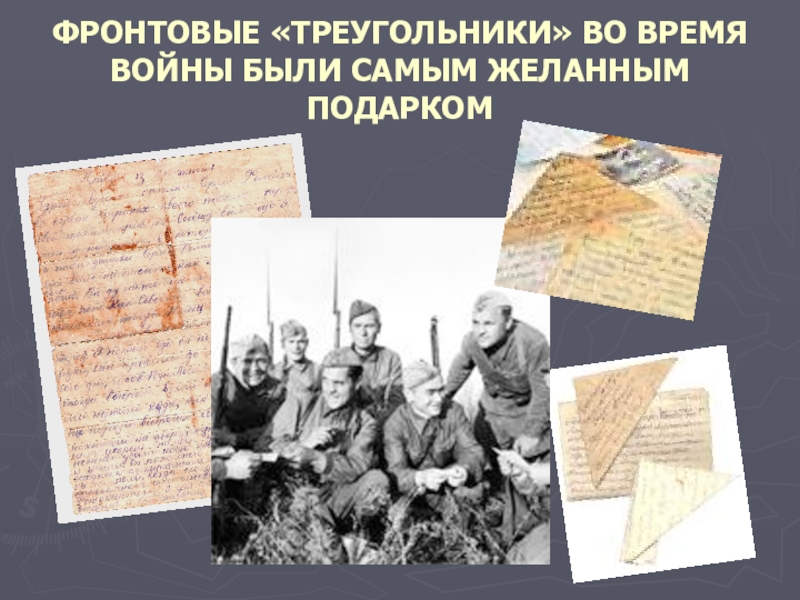 Слайд 11ФРОНТОВЫЕ «ТРЕУГОЛЬНИКИ» ВО ВРЕМЯ ВОЙНЫ БЫЛИ САМЫМ ЖЕЛАННЫМ ПОДАРКОМ
