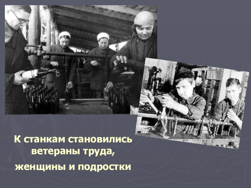 Слайд 5К станкам становились ветераны труда, женщины и подростки