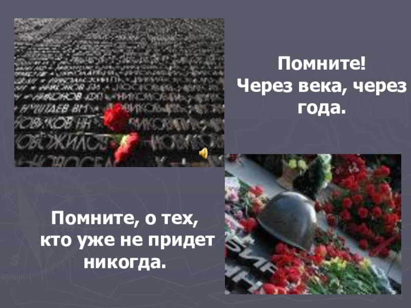 Слайд 13Помните! Через века, через года. Помните, о тех, кто уже не