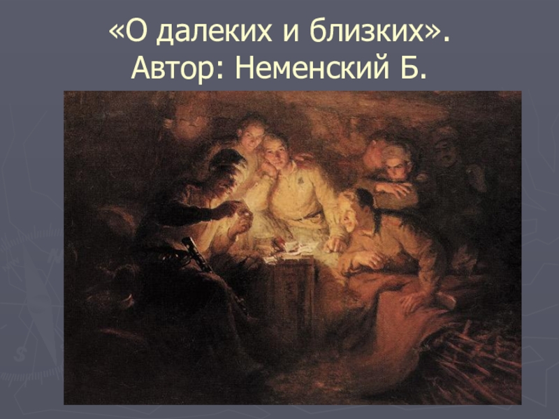 Слайд 12«О далеких и близких». Автор: Неменский Б.