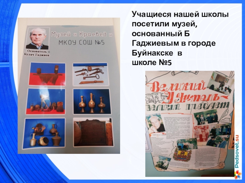 На базе этих материалов создан и замечательный музей школы № 5 г. Буйнакска.