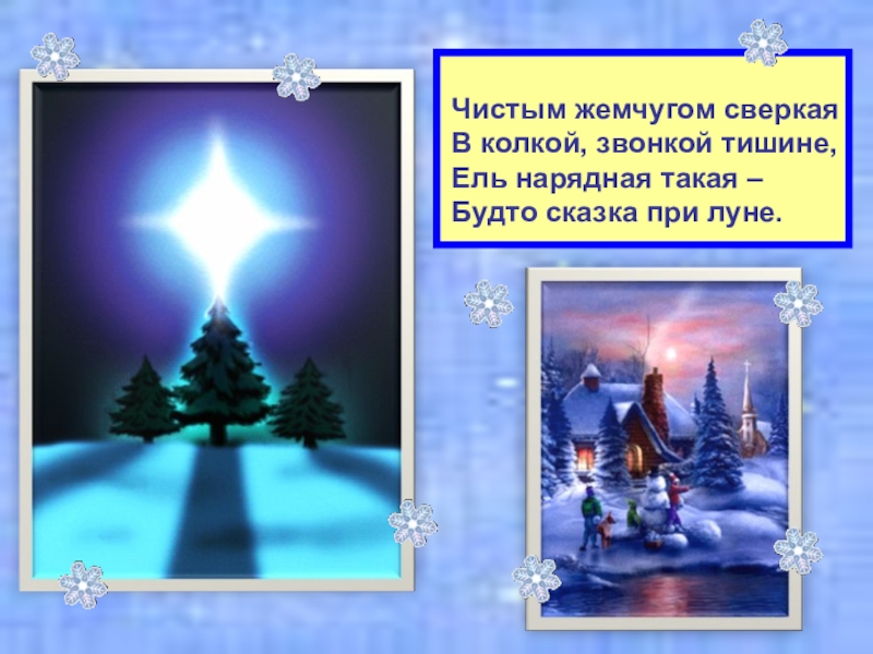 на ёлке – снег, снег.