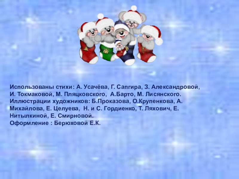 Слайд 38Использованы стихи: А. Усачёва, Г. Сапгира, З. Александровой,