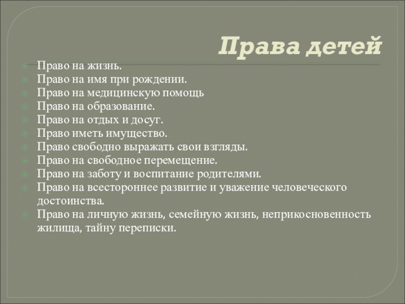 Право на всестороннее развитие и уважение человеческого достоинства.