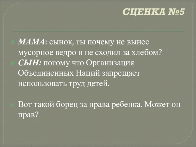СЫН: потому что Организация Объединенных Наций запрещает использовать труд детей.
