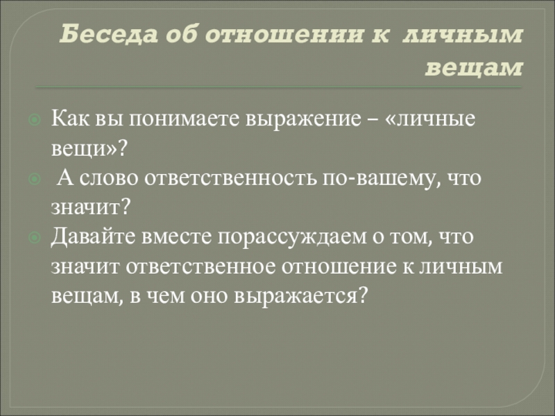 Давайте вместе порассуждаем о том, что значит ответственное отношение к личным вещам, в чем оно выражается?