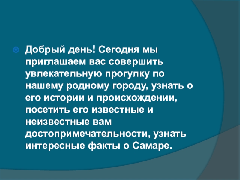родному городу, узнать о его истории и происхождении, посетить его известные и неизвестные вам достопримечательности, узнать интересные факты о Самаре.