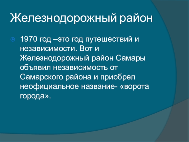 1970 год –это год путешествий и независимости. Вот и Железнодорожный