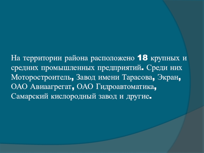 Слайд 52На территории района расположено 18 крупных и средних промышленных предприятий. Среди