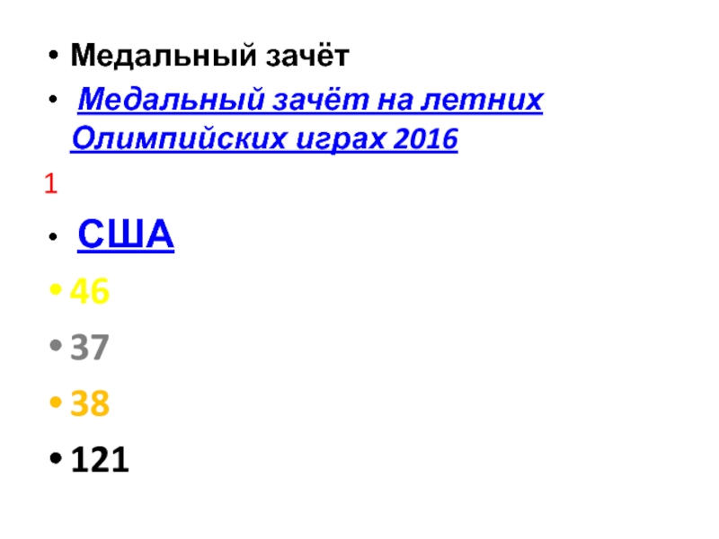 Медальный зачёт Медальный зачёт на летних Олимпийских играх 20161 США463738121 3 Китай26182670