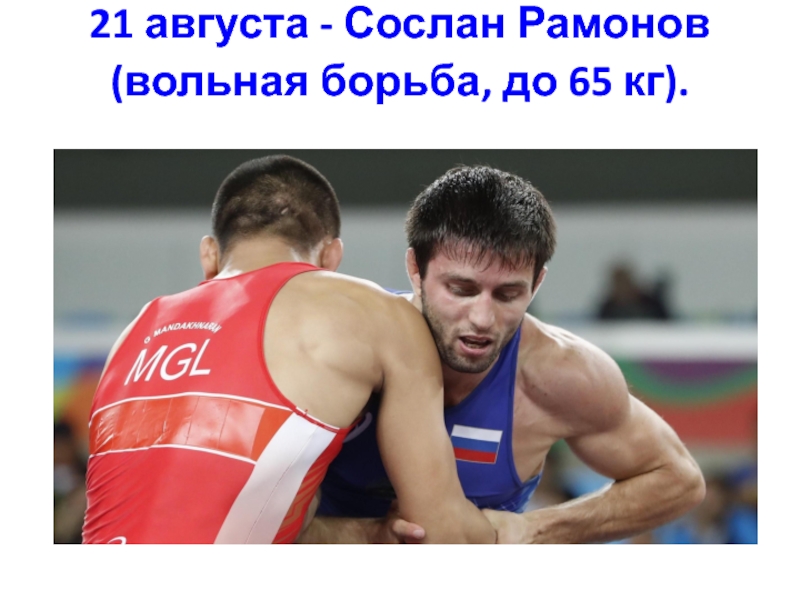 Слайд 4821 августа - Сослан Рамонов (вольная борьба, до 65 кг).