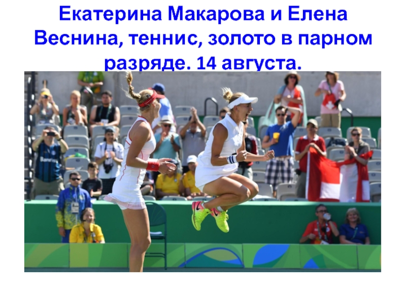 Слайд 34Екатерина Макарова и Елена Веснина, теннис, золото в парном разряде. 14