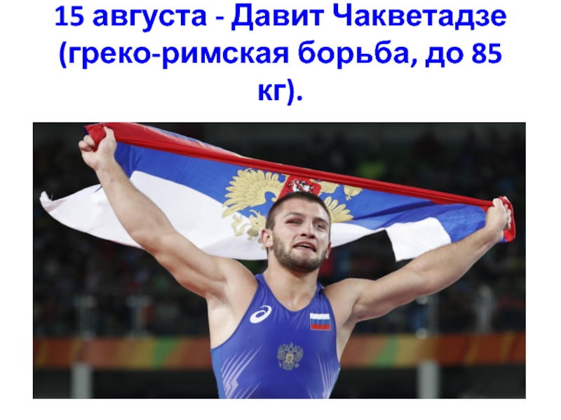 Слайд 3715 августа - Давит Чакветадзе (греко-римская борьба, до 85 кг).