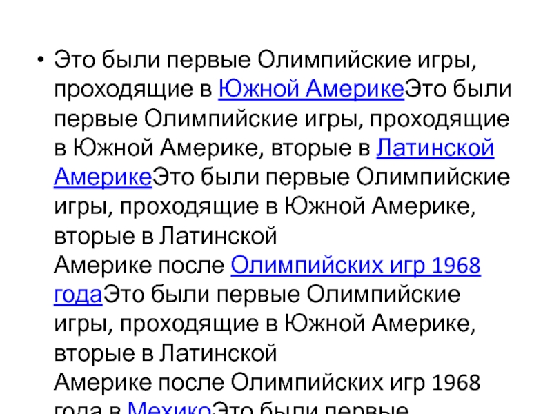 Это были первые Олимпийские игры, проходящие в Южной АмерикеЭто были первые Олимпийские игры, проходящие в Южной Америке, вторые в Латинской