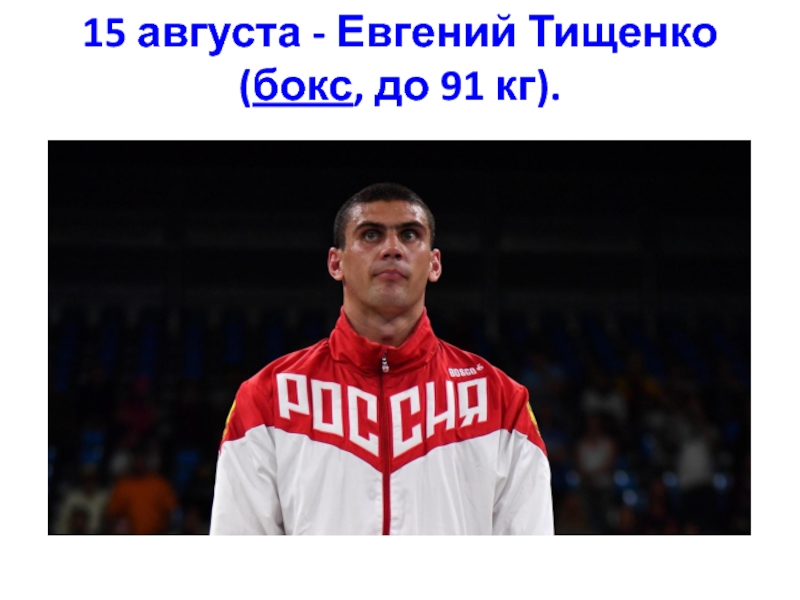 Слайд 3815 августа - Евгений Тищенко (бокс, до 91 кг).