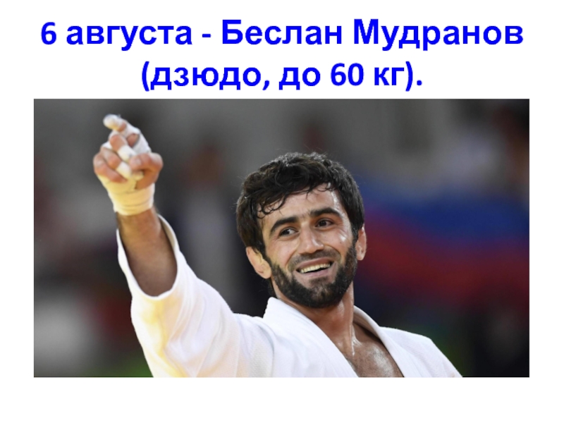 Слайд 286 августа - Беслан Мудранов (дзюдо, до 60 кг).