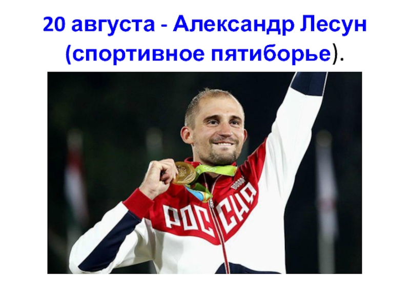 Слайд 4020 августа - Александр Лесун (спортивное пятиборье).