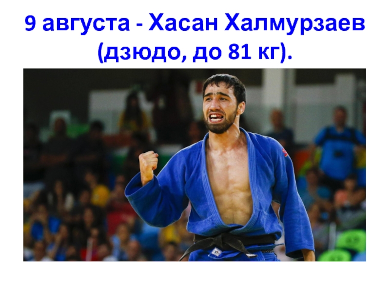 Слайд 309 августа - Хасан Халмурзаев (дзюдо, до 81 кг).