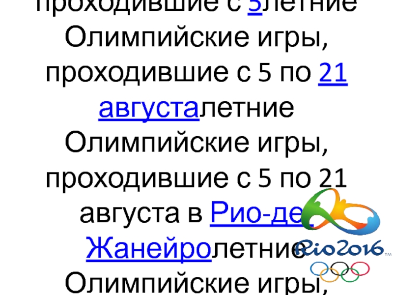 Олимпийские игры, проходившие с 5 по 21 августалетние Олимпийские игры, проходившие с 5 по 21 августа в Рио-де-Жанейролетние Олимпийские игры, проходившие с 5 по 21 августа в Рио-де-Жанейро, Бразилия.