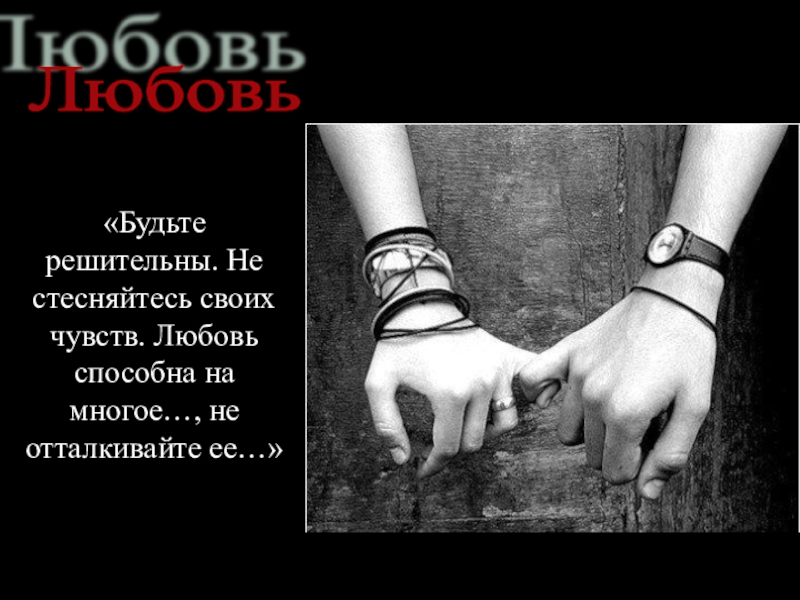 «Будьте решительны. Не стесняйтесь своих чувств. Любовь способна на многое…,