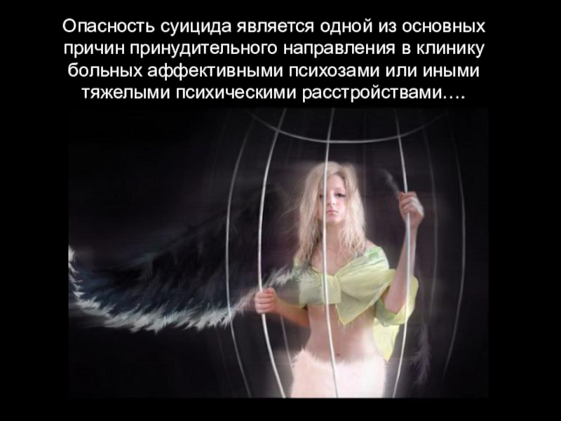Слайд 32Опасность суицида является одной из основных причин принудительного направления в клинику