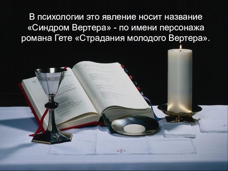 Слайд 6В психологии это явление носит название «Синдром Вертера» - по имени