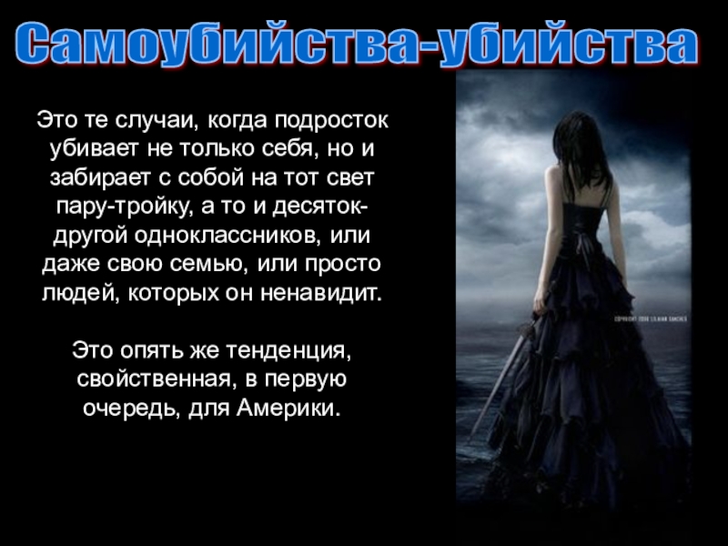 Слайд 37Это те случаи, когда подросток убивает не только себя, но и